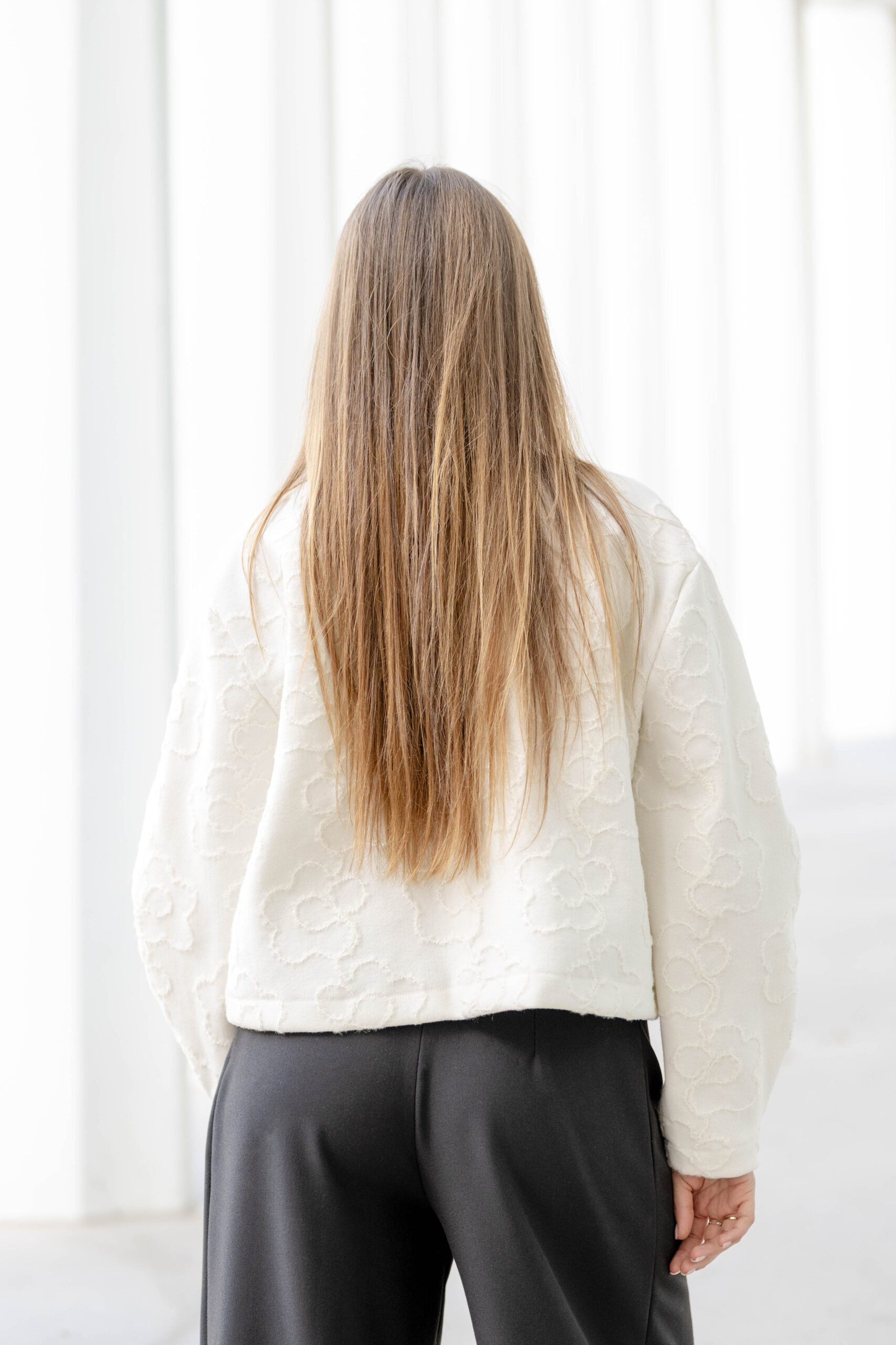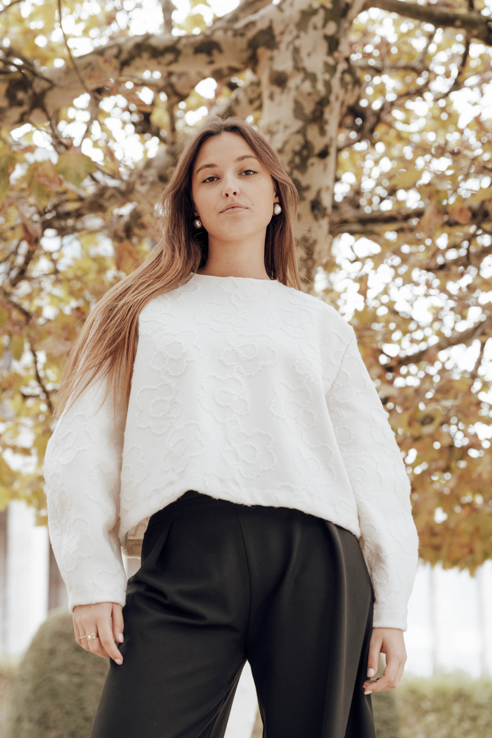 Tout en douceur, Céleste dévoile un motif fleuri subtil et raffiné. Existe en blanc ou en noir, et s’accorde facilement avec tous les pantalons de votre garde-robe.